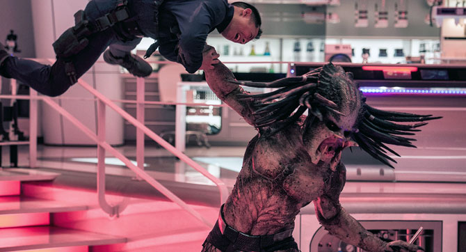 Quinn überlebt die Begegnung mit der übel gelaunten Schwiegermutter und tütet kurzerhand die Maske und eine Armschiene ein. Die Ausrüstung schickt er zu seiner Ex-Frau nach Hause, bevor er von der Regierung – aus Sicherheitsgründen – in die Klapse gesteckt wird. Noch im Bus macht er Bekanntschaft mit fünf anderen Soldaten, die ruhiggestellt werden sollen. Sie sehen, wie der Predator aus einer Regierungseinrichtung entkommt und kapern den Bus, um ihn zu verfolgen.